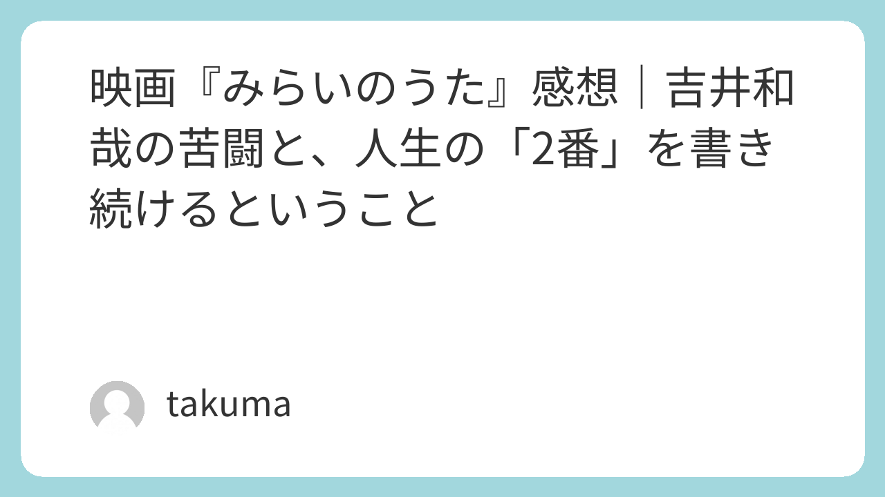 映画『みらいのうた』感想|吉井和哉の苦闘と、人生の「2番」を書き続けるということ